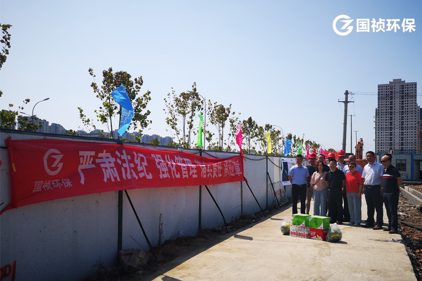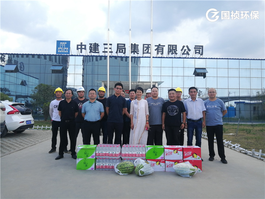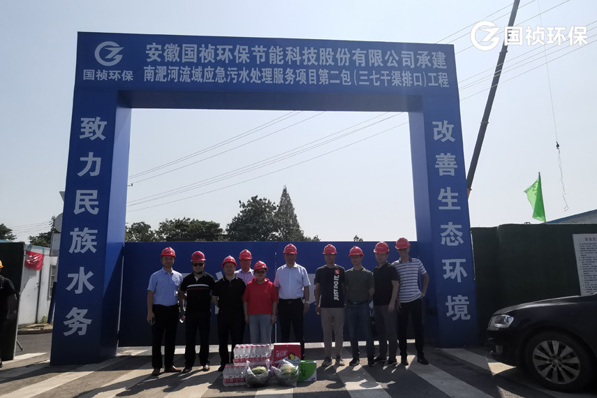 8月13日,國禎環保副總經理殷皓、王立余 、審計副總監王海寧及建設管理中心主任方亮等一行來到南淝河流域應急污水處理服務項目施工現場,將消暑降溫用品送到一線員工手中,詳細詢問大家的工作和生活情況,對大家不畏高溫、忠于職守的工作態度表示敬意和感謝,并叮囑大家要合理安排施工現場的作息時間,注意防暑降溫、勞逸結合。同時鼓勵大家攻堅克難,為南淝河流域水質改善貢獻國禎智慧。