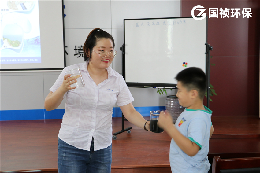 隨后,大家在合肥市美麗鄉村參加了親子互動活動,并來到了國禎環保小倉房污水處理廠。在禎愛水課堂上,“我國的水資源分布情況怎么樣”、“污水是如何處理成清泉的?”、“我們在生活中如何保護水資源”,小朋友們提出的一個個問題,通過晶晶老師互動問答、播放動畫、課堂試驗等環節都做出了詳細的解答,為到訪小朋友們深入淺出地上了一堂生動的“水資源現狀及污水處理流程”課程。通過學習,小朋友們了解了人類的淡水資源現狀以及污水處理的過程與難度,大家紛紛表示,要在以后的生活中愛水、護水、節水,爭做“禎愛水”的環保小衛士。
