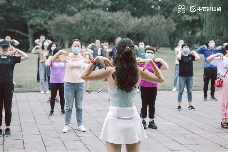 正式比賽前,在運動達人楊慧老師的帶領下,選手們熱火朝天地做著賽前熱身,動作瀟灑、節奏明快、朝氣蓬勃。
