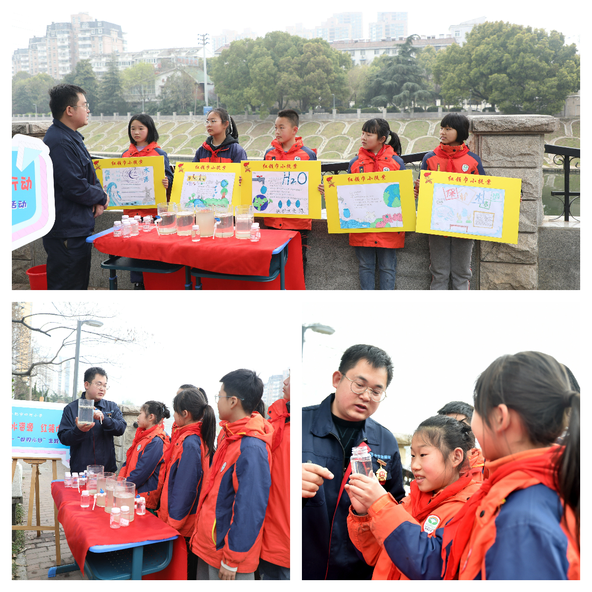 儀式結束后,全國技術能手、“安徽省五一勞動獎章”獲得者、中節能國禎員工楊策,帶領四河小學五(2)中隊同學們來到南淝河邊,開展了一場別具一格、內容精心設計,以“珍惜水環境 紅領巾在行動”為主題的世界水日實踐活動。活動中不僅有“世界水日”知識競答比賽、“污水變清泉”動手實驗,學生們還現場開動腦筋,拿出污水防治的“紅領巾小提案”。珍惜水、節約水、保護水資源的環保理念逐漸深入孩子們的心中。